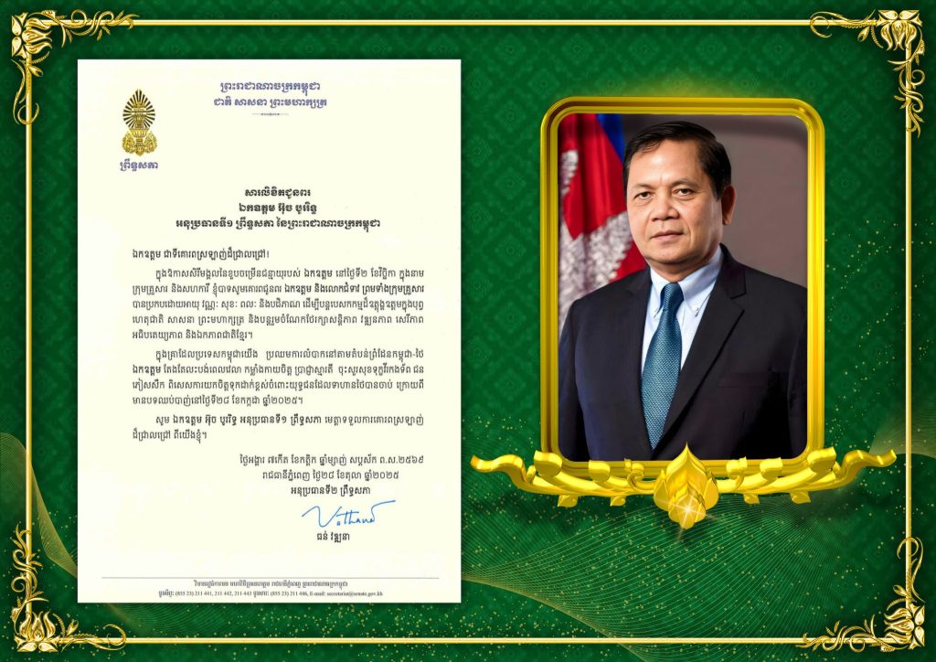 សារលិខិតជូនពររបស់ឯកឧត្តមបណ្ឌិត ធន់ វឌ្ឍនា អនុប្រធានទី២ព្រឹទ្ធសភា គោរពជូន ឯកឧត្តម អ៊ុច បូររិទ្ធ អនុប្រធានទី១ ព្រឹទ្ធសភា នៃព្រះរាជាណាចក្រកម្ពុជា ក្នុងឱកាសសិរីមង្គលនៃខួបចម្រើនជន្មាយុរបស់ឯកឧត្តម នៅថ្ងៃទី២ ខែវិច្ឆិកា ឆ្នាំ២០២៥