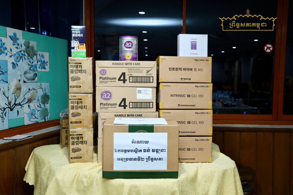 អំណោយទាំងអស់នោះ រួមមាន៖ ទឹកដោះគោ៥កេស, ជេលលាបដៃ៥កេស, ជេលបិតក្បាល៥កេស, ថ្នាំដុសធ្មេញ២៥៦ប្រអប់, ច្រាសដុសធ្មេញ ១៥០ដើម, វ៉ែនតា១២០ ទឹកដោះគោ២កំប៉ុង ,ស្បែកជើង២គូរ ,អាវងារ០២។