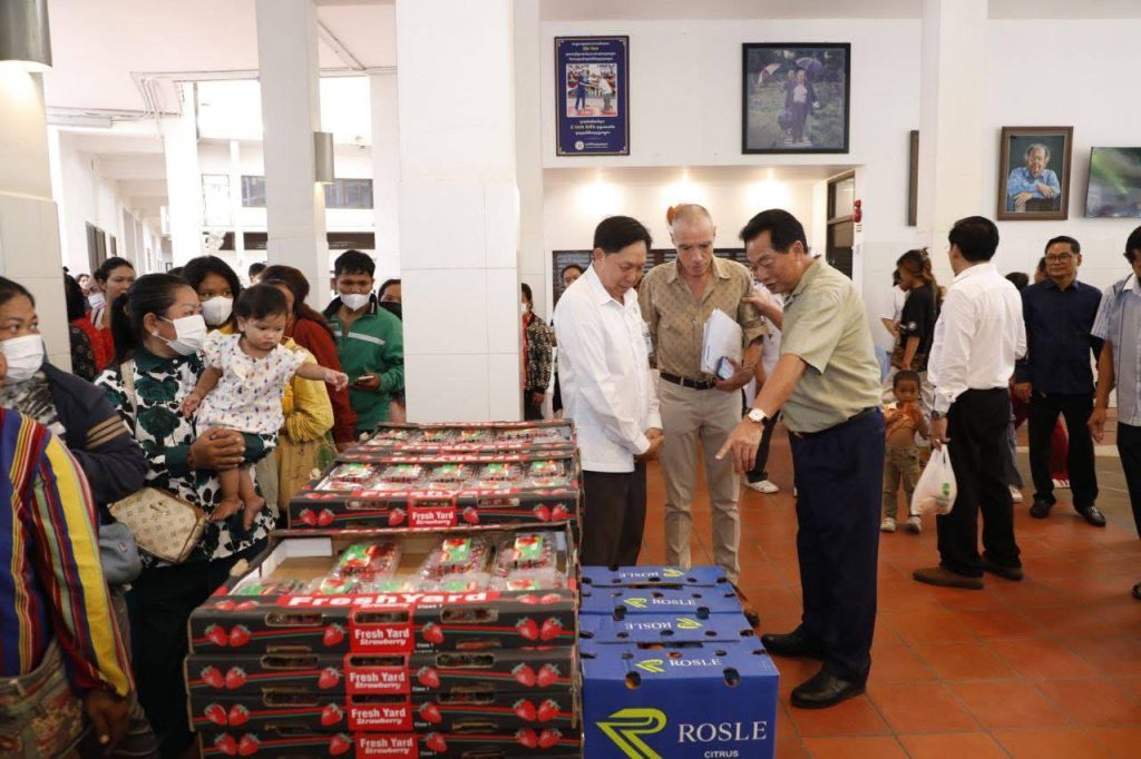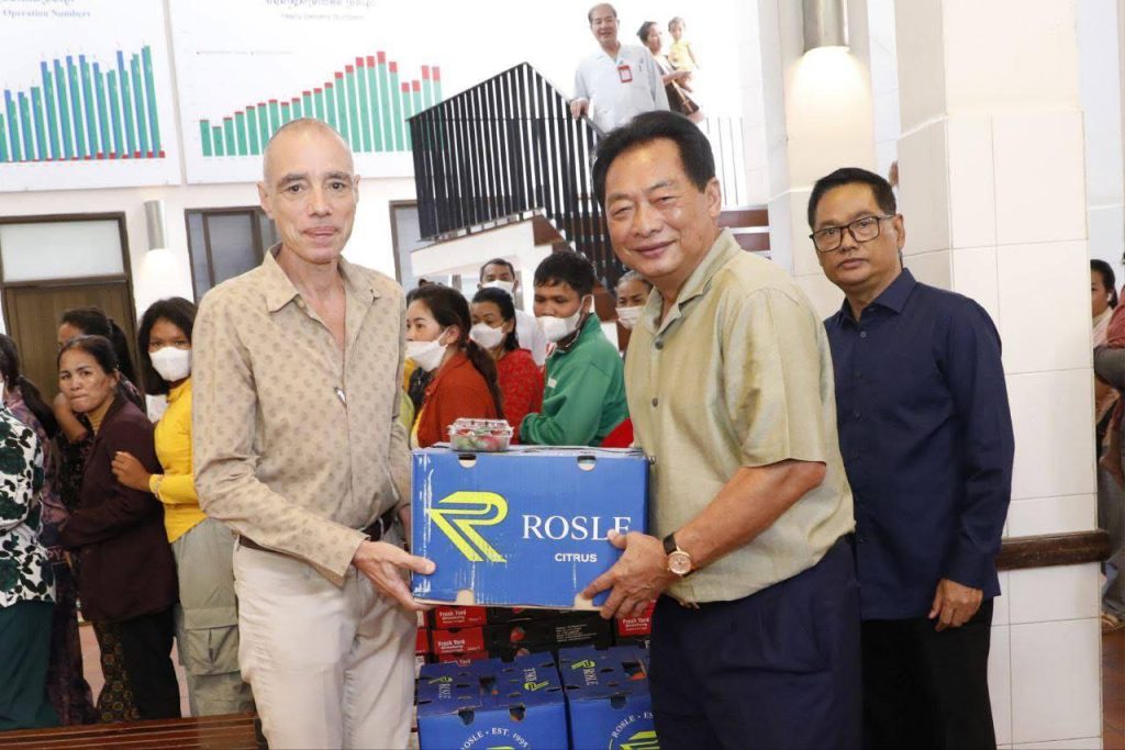 នាឱកាសសំណេះសំណាលនេះ មានសប្បុរជនជាច្រើនបានចូលរួមឧបត្ថម្ភផ្លែឈើជាច្រើនប្រភេទដូចជា៖ លោកស្រី ណុប ស្រីឡាង (ហាងចំការខ្មែរ)បានឧបត្ថម្ភផ្លែទន្ទាប់ចំនួន១០០កេសស្មើនឹង១,០០០គីឡូក្រាម, លោកស្រី ណាវី អ្នកផលិតបាយក្តាំងបានឧបត្ថម្ភបាយក្តាំងចំនួន១០០កញ្ចប់, លោក ហាក់ អ្នកបោះដុំផ្លែឈើបានឧបត្ថម្ភ ផ្លែទន្លាប់ចំនួន៥០កេស ស្មើនឹង៥០០គីឡូក្រាម, លោកស្រី គឹម ហ័រ បានឧបត្ថម្ភផ្លែស្ត្រូប៊ូរីចំនួន ៣០កេស ស្មើនឹង៣០០ប្រអប់ ផ្លែក្រូចចំនួន៣៥កេស ស្មើនឹង៣៥០គីឡូក្រាម សម្រាប់ជូនប្រជាជន បុគ្គលិក និងវេជ្ជបណ្ឌិតនៅក្នុងមន្ទីរពេទ្យផងដែរ។