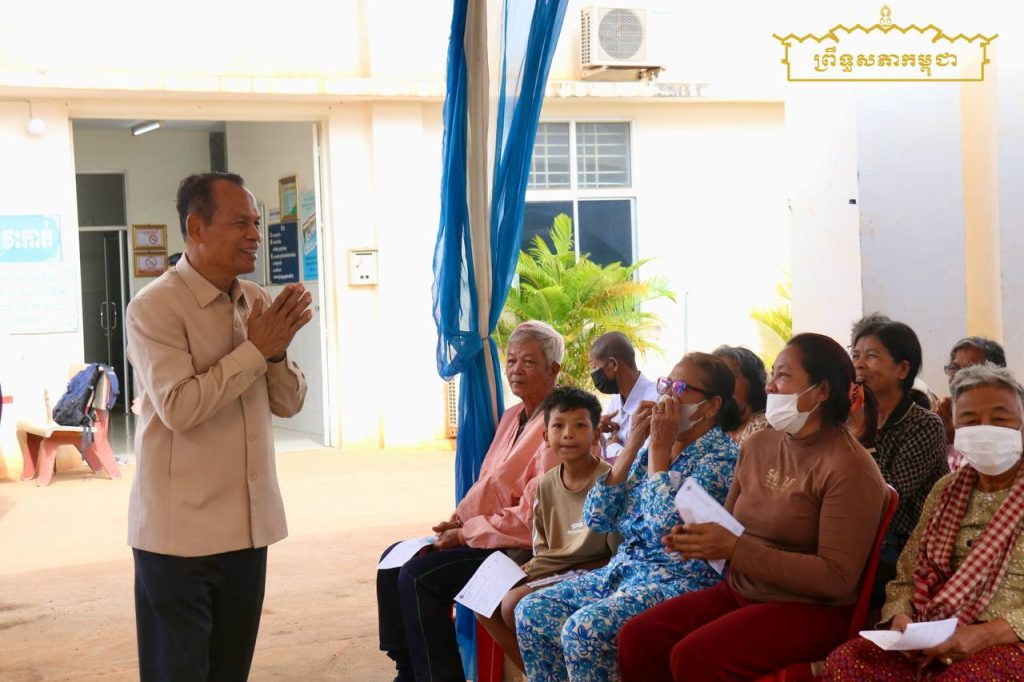 មុននឹងក្រុមគ្រូពេទ្យពិនិត្យព្យាបាលជំងឺជូនប្រជាពលរដ្ឋ ឯកឧត្តមអនុប្រធានក្រុម បានសំណេះសំណាលជាមួយប្រជាពលរដ្ឋ ដោយបាននាំយកប្រសាសន៍ផ្តាំផ្ញើសួរសុខទុក្ខ និងពរជ័យពីសម្តេចតេជោ ហ៊ុន សែន ប្រធានព្រឹទ្ធសភា ឯកឧត្តម អ៊ុច បូររិទ្ធ អនុប្រធានទី១ និងឯកឧត្តមបណ្ឌិត ធន់ វឌ្ឍនា អនុប្រធានទី២ព្រឹទ្ធសភា ជូនដល់បងប្អូនប្រជាពលរដ្ឋ សូមមានសុខភាពល្អគ្រប់ៗគ្នា ព្រមទាំងបានអរគុណដល់អាជ្ញាធរពាក់ព័ន្ធ និងក្រុមគ្រូពេទ្យស្ម័គ្រចិត្ត ដែលបានរៀបចំទីកន្លែង សម្របសម្រួលបែបបទ និងចុះមកពិនិត្យព្យាបាលជំងឺជូនប្រជាពលរដ្ឋនាឱកាសនេះ។