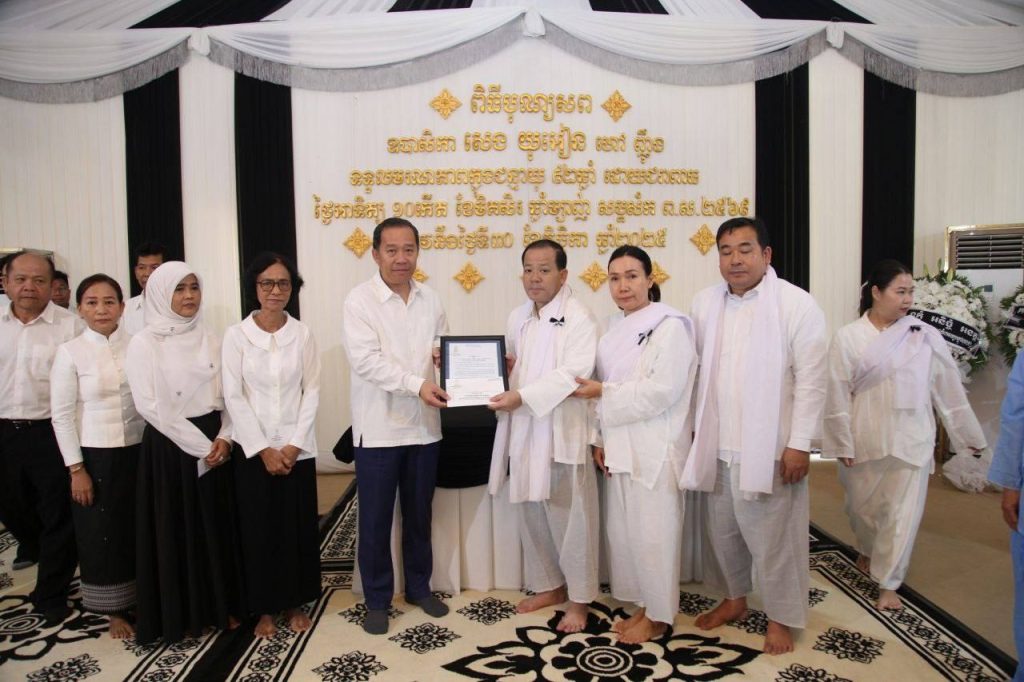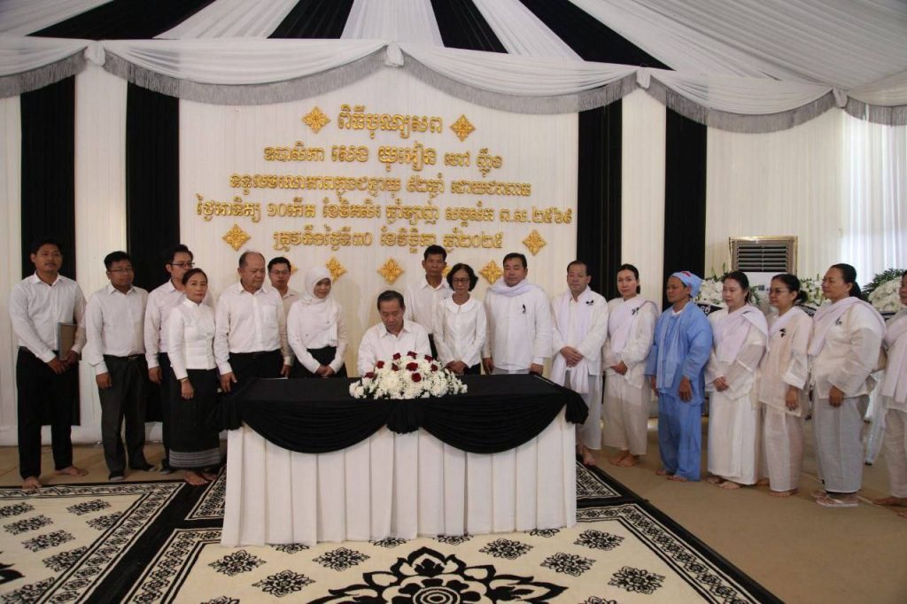 នាព្រឹកថ្ងៃទី២ ខែធ្នូ ឆ្នាំ២០២៥ ឯកឧត្តមបណ្ឌិត ធន់ វឌ្ឍនា អនុប្រធានទី២ព្រឹទ្ធសភា និងជាប្រធានក្រុមសមាជិកព្រឹទ្ធសភាប្រចាំភូមិភាគទី១ បានអញ្ជើញដឹកនាំគណៈប្រតិភូក្រុមសមាជិកព្រឹទ្ធសភាប្រចាំភូមិភាគទី១ អញ្ជើញគោរពវិញ្ញាណក្ខន្ធ ឧបាសិកា សេង យុអៀន ត្រូវជាម្តាយបង្កើតរបស់ លោក លីម សុភា អភិបាល នៃគណៈអភិបាលខណ្ឌជ្រោយចង្វារ ដែលបានទទួលមរណភាព កាលពីថ្ងៃអាទិត្យ ទី៣០ ខែវិច្ឆិកា ឆ្នាំ២០២៥ វេលាម៉ោង១០:២៨នាទីព្រឹក ក្នុងជន្មាយុ ៩២ឆ្នាំ ដោយជរាពាធ នៅភូមិព្រែកតាគង់ ឃុំព្រែកតាម៉ាក់ ស្រុកខ្សាច់កណ្តាល ខេត្តកណ្តាល។