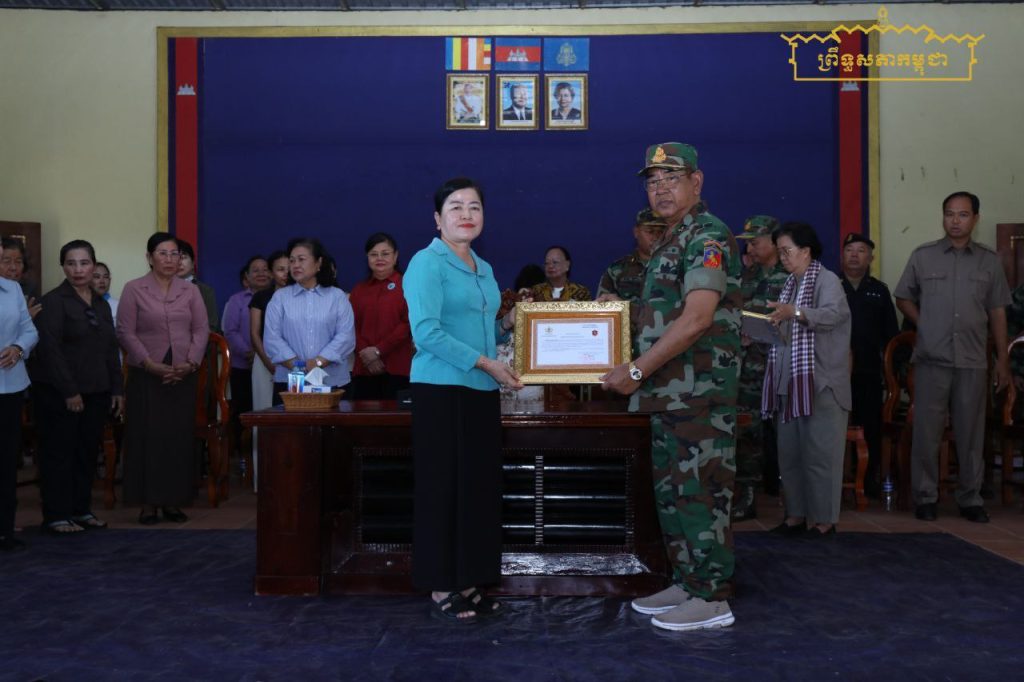 គណៈប្រតិភូគណៈកម្មការសុខាភិបាល សង្គមកិច្ច អតីតយុទ្ធជន យុវនីតិសម្បទា ការងារ បណ្តុះបណ្តាលវិជ្ជាជីវៈ និងកិច្ចការនារី នៃព្រឹទ្ធសភា (គណៈកម្មការទី៨) និងក្រុមសមាជិកាព្រឹទ្ធសភា ដឹកនាំដោយលោកជំទាវ មាន សំអាន ប្រធានគណៈកម្មការ និងជាប្រធានក្រុមសមាជិកា និងមានការយាងចូលរួមពីសម្ដេចរាជបុត្រីព្រះអនុជ នរោត្តម អរុណរស្មី ឧត្តមប្រឹក្សាផ្ទាល់ព្រះមហាក្សត្រ នៃព្រះរាជាណាចក្រកម្ពុជា និងជាសមាជិកាព្រឹទ្ធសភា បានអញ្ជើញអមដំណើរសម្តេចកិត្តិសង្គហបណ្ឌិត ម៉ែន សំអន ឧត្តមប្រឹក្សាផ្ទាល់ព្រះមហាក្សត្រ នៃព្រះរាជាណាចក្រកម្ពុជា និងជាប្រធានគណៈកម្មាធិការសមាគមនារីកម្ពុជា ដើម្បីសន្តិភាព និងអភិវឌ្ឍន៍ ចុះជួបសំណេះសំណាល សួរសុខទុក្ខ និងនាំយកអំណោយជាធុងចំរោះទឹកស្អាត គ្រឿងឧបភោគបរិភោគ និងសម្ភារៈប្រើប្រាស់ផ្តល់ជូនគ្រួសារកងទ័ពជួរមុខប្រចាំទិសមុំបីខេត្តព្រះវិហារសរុប ៨៩៩គ្រួសារ នៅបញ្ជាការដ្ឋានកងពលតូចអន្តរាគមន៍លេខ៩ ខេត្តព្រះវិហារ នាព្រឹកថ្ងៃអង្គារ ១២កើត ខែមិគសិរ ឆ្នាំម្សាញ់ សប្តស័ក ពុទ្ធសករាជ ២៥៦៩ ត្រូវនឹងថ្ងៃទី២ ខែធ្នូ ឆ្នាំ២០២៥។ថ្លែងក្នុងឱកាសនោះ សម្តេចកិត្តិសង្គហបណ្ឌិត ក៏បាននាំនូវប្រសាសន៍សួរសុខទុក្ខពីសំណាក់សម្តេចអគ្គមហាសេនាបតីតេជោ ហ៊ុន សែន ប្រធានក្រុមឧត្តមប្រឹក្សាផ្ទាល់ព្រះមហាក្សត្រ ប្រធានព្រឹទ្ធសភា និងសម្តេចកិត្តិព្រឹទ្ធបណ្ឌិត ប៊ុន រ៉ានី ហ៊ុនសែន ប្រធានកាកបាទក្រហមកម្ពុជា សម្តេចមហាបវរធិបតី ហ៊ុន ម៉ាណែត នាយករដ្ឋមន្ត្រី និងលោកជំទាវបណ្ឌិត ពេជ ចន្ទមុន្នី នូវការនឹករលឹក ការគិតគូរ និងស្រឡាញ់កងទ័ព កងនគរបាល ដោយបានបញ្ជាក់ពីស្មារតីស្នេហាជាតិ ការពារជាតិក្នុងការការពារខឿនការពារជាតិ។សម្តេចកិត្តិសង្គហបណ្ឌិត បានថ្លែងអំណរគុណ និងចូលរួមរំលែកនូវទុក្ខលំបាកដល់គ្រួសារវីរកងទ័ពជួរមុខ ជាពិសេស ក្រុមគ្រួសារមានសមាជិកបានលះបង់ និងពលីជីវិតនៅក្នុងសង្រ្គាមឈ្លានពានទឹកដី ដែលនេះគឺជាការលះបង់ដ៏ធំធេង និងគុណបំណាច់មិនអាចកាត់ថ្លៃបានចំពោះប្រជាជាតិកម្ពុជាទាំងមូលដែលយើងគ្រប់គ្នាត្រូវតែគោរពស្រឡាញ់ដឹងគុណ និងផ្តល់តម្លៃជាវីរបុរសរបស់ជាតិសម្រាប់ប្រវត្តិសាស្ត្រកម្ពុជា។សម្តេចកិត្តិសង្គហបណ្ឌិត បានបន្តទៀតថា រាជរដ្ឋាភិបាល តែងតែយកចិត្តទុកដាក់ខ្ពស់ចំពោះក្រុមគ្រួសារកងទ័ពទាំងអស់ ដើម្បីធានាថាពួកគាត់ទទួលបានការគាំទ្រ និងជំនួយចាំបាច់ផ្សេងៗ ខណៈដែលស្វាមី កូន ឬបងប្អូនរបស់ពួកគាត់កំពុងបំពេញភារកិច្ចដ៏ថ្លៃថ្លាការពារជាតិ។ ជាមួយគ្នានេះដែរ សម្តេចកិត្តិសង្គហបណ្ឌិត ក៏បានណែនាំដល់អជ្ញាធរគ្រប់ថ្នាក់បន្តយកចិត្តទុកដាក់ និងផ្ដល់ភាពកក់ក្ដៅជាប្រចាំដល់ក្រុមគ្រួសារកងទ័ពនៅក្នុងមូ