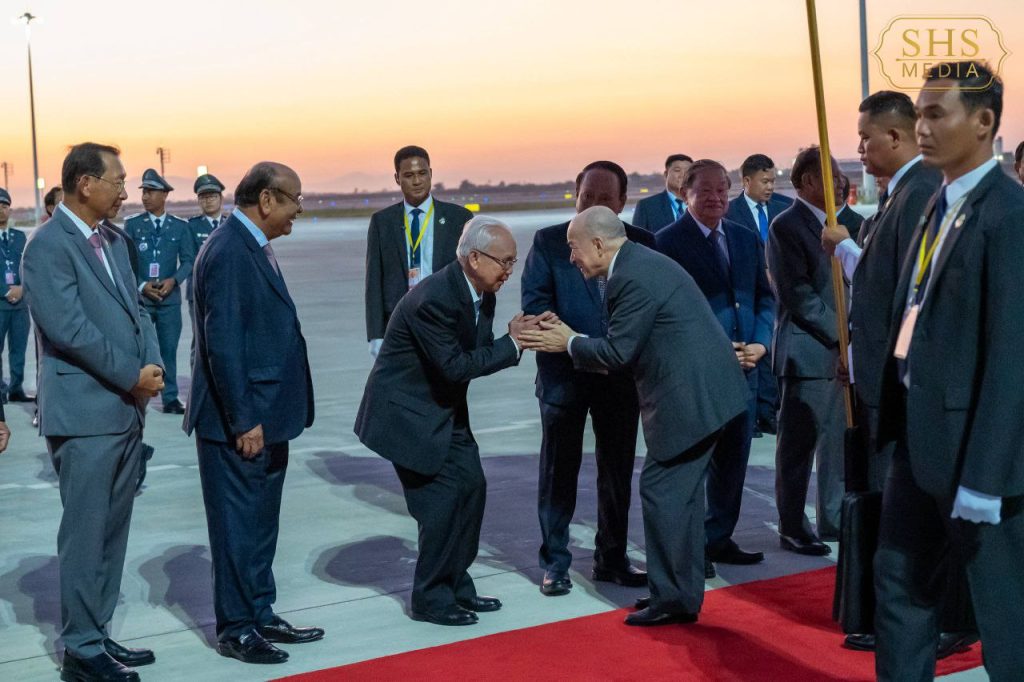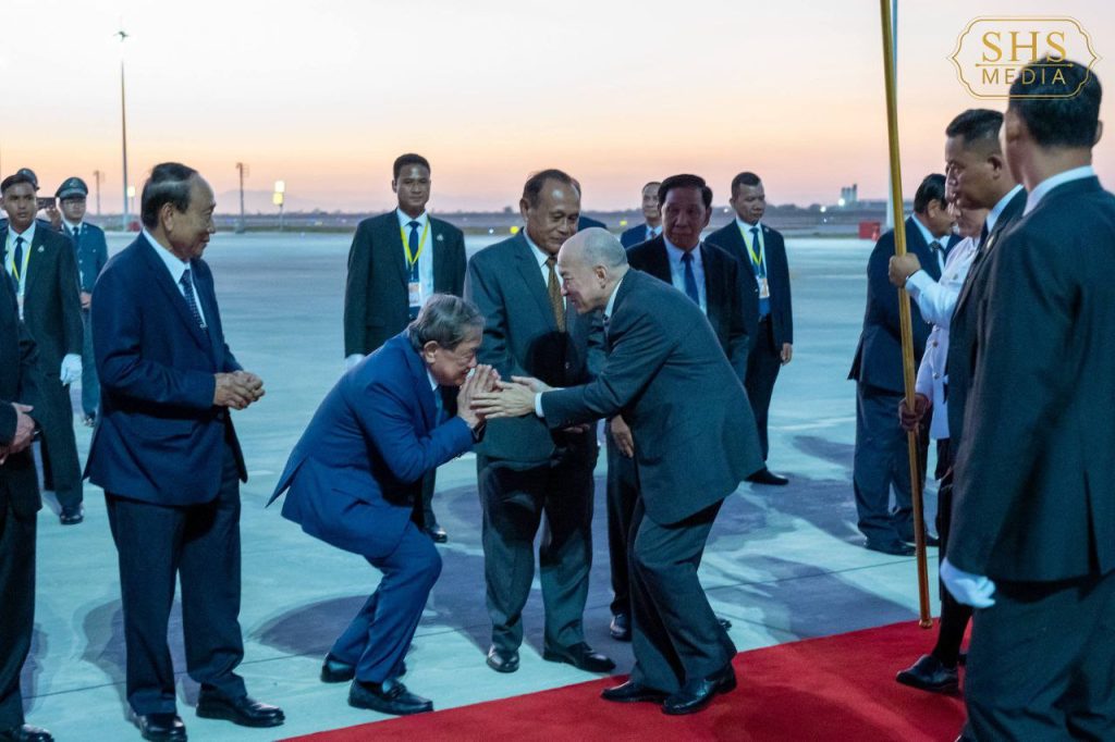សម្ដេចអគ្គមហាសេនាបតីតេជោ ហ៊ុន សែន ប្រធានក្រុមឧត្តមប្រឹក្សាផ្ទាល់ព្រះមហាក្សត្រ និងជាប្រធានព្រឹទ្ធសភា នៃព្រះរាជាណាចក្រកម្ពុជា បានអញ្ជើញទទួលព្រះរាជដំណើរយាងនិវត្តន៍ របស់ព្រះករុណាព្រះបាទសម្ដេច ព្រះបរមនាថ នរោត្តម សីហមុនី ព្រះមហាក្សត្រ នៃព្រះរាជាណាចក្រកម្ពុជា បន្ទាប់ពីព្រះអង្គបានយាងចូលរួមកម្មវិធីបណ្ឌិត្យសភាវិទ្យាសាស្រ្ត នៅទីក្រុងប៉ារីស ប្រទេសបារាំង នារសៀល ថ្ងៃអាទិត្យ ២រោច ខែមិគសិរ ឆ្នាំម្សាញ់ សប្តស័ក ព.ស. ២៥៦៩ ត្រូវនឹង ថ្ងៃទី៧ ខែធ្នូ ឆ្នាំ២០២៥។