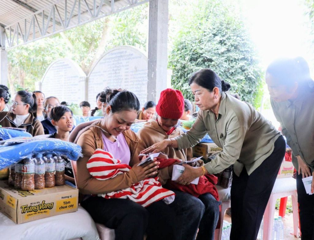 នៅព្រឹកថ្ងៃទី១៤ ខែធ្នូ ឆ្នាំ២០២៥ លោកជំទាវ ឃួន ឃុនឌី លេខាធិការគណៈកម្មការទី៨ព្រឹទ្ធសភា និងអនុប្រធានក្រុមសមាជិកព្រឹទ្ធសភាប្រចាំភូមិភាគទី៨ និមន្ត និងរួមដំណើរដោយ គ្រូចៅអធិការវត្តចំនួន៣វត្តក្នុងស្រុក លោកជំទាវអ្នកតំណាង រាស្ត្រមណ្ឌលកំពង់ធំ លោកជំទាវអភិបាលរងខេត្ត លោក លោកស្រីអភិបាលរងស្រុក លោក លោកស្រីមេឃុំ បានអញ្ជើញជួបសំណេះសំណាល ចែកអំណោយ ជូនដល់គ្រួសារភៀសសឹក ស្នាក់នៅបណ្តោះអាសន្នក្នុងស្រុកកំពង់ស្វាយ ចំនួន១០២គ្រួសារ ស្ថិតនៅសាលាឃុំសាន់គ ស្រុកកំពង់ស្វាយ