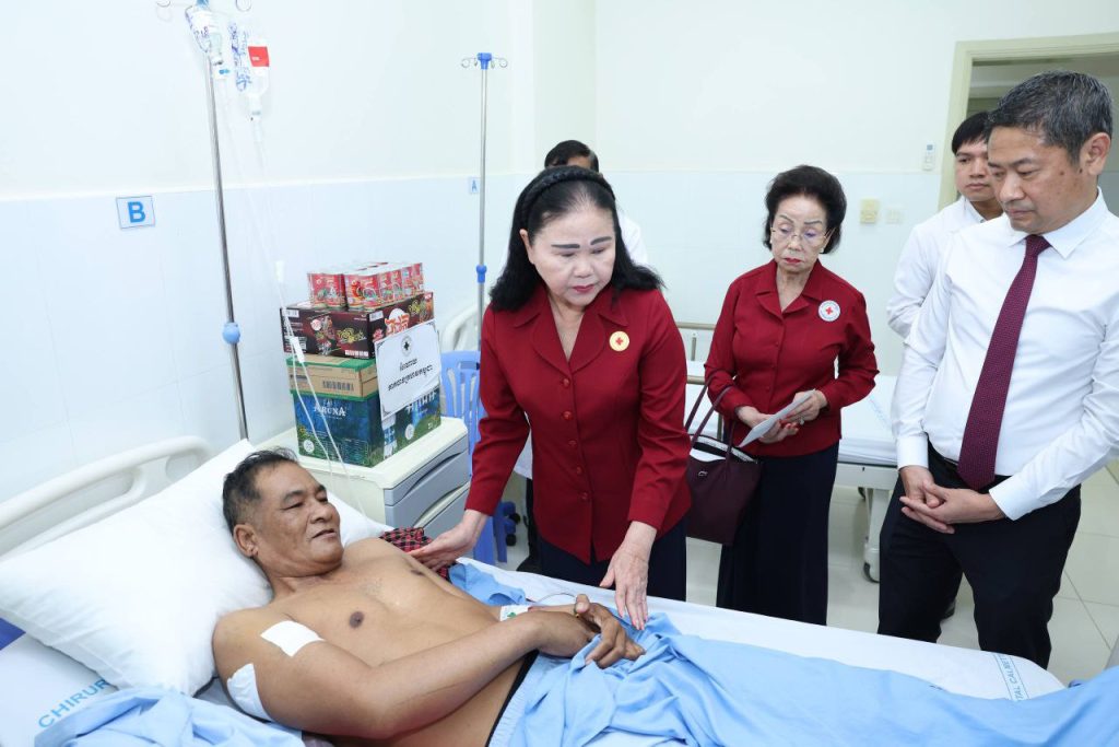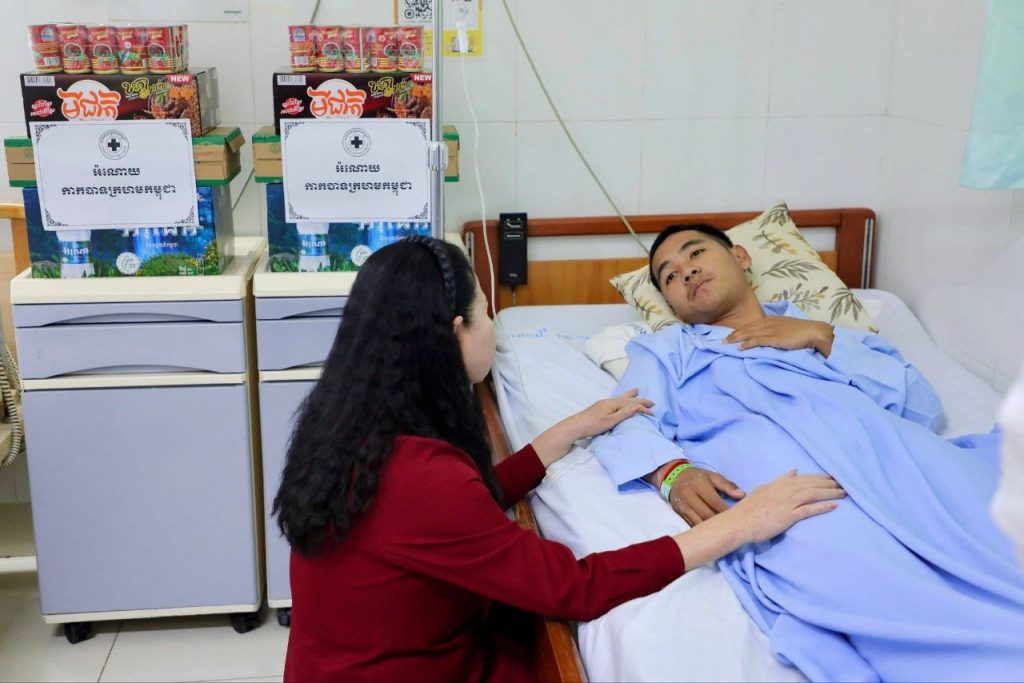 នារសៀលថ្ងៃទី១៥ ខែធ្នូ ឆ្នាំ២០២៥ លោកជំទាវបណ្ឌិត អ៊ុក​ ម៉ាលី​ សមាជិកាគណ:កម្មការទី២​ព្រឹទ្ធសភា​ បានអញ្ជើញអមដំណើរសម្តេចកិត្តិព្រឹទ្ធបណ្ឌិត ប៊ុន រ៉ានី ហ៊ុនសែន ប្រធានកាកបាទក្រហមកម្ពុជា អញ្ជេីញចុះសួរសុខទុក្ខ និងនាំយកអំណោយមនុស្សធម៌ផ្តល់ជូនវីរយុទ្ធជនការពារបូរណភាពទឹកដីនៃប្រទេសកម្ពុជា​ ដែលរងរបួសក្នុងសមរភូមិកំពុងសម្រាកព្យាបាលនៅតាមមន្ទីរពេទ្យនានាក្នុងរាជធានីភ្នំពេញ។