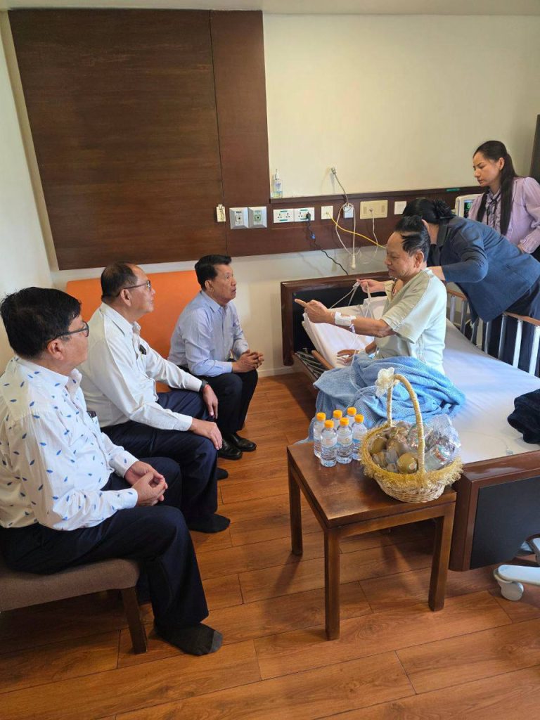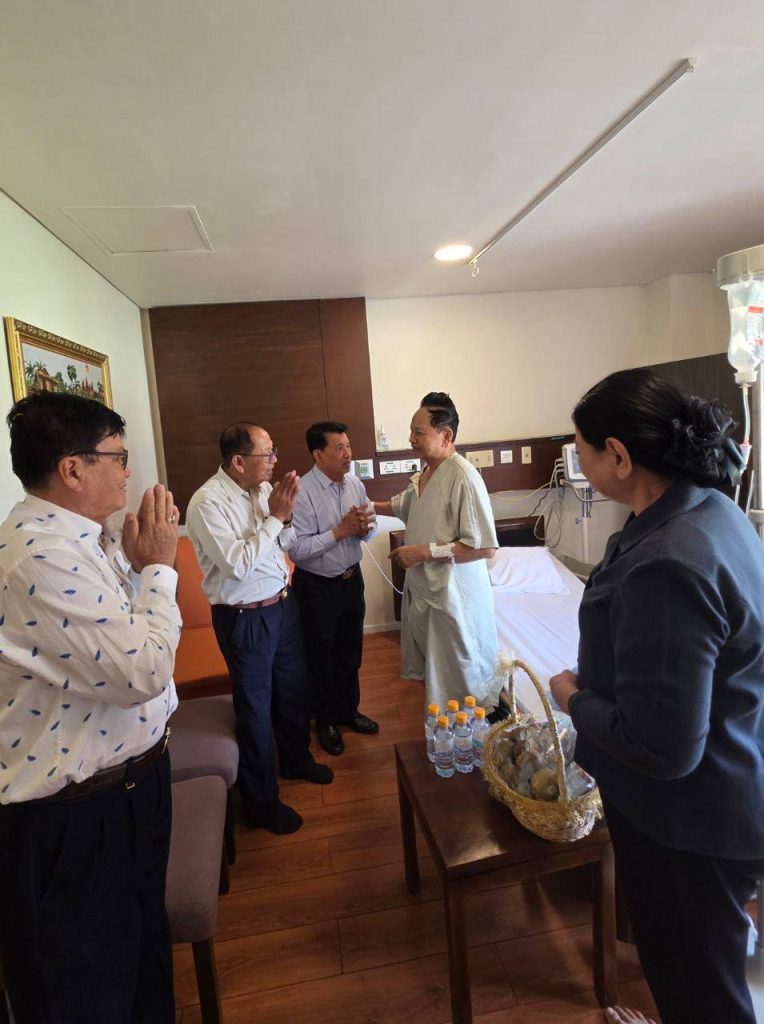 ឯកឧត្តម ម៉ាន់ ឈឿន ឯកឧត្តម ឈើយ ចាន់ណា និងឯកឧត្តម អ៊ឹង លាងហ៊ួ អញ្ជើញសួរសុខទុក្ខ ឯកឧត្តម ឈិត សុខុន ប្រធានគណៈកម្មការទី៧ព្រឹទ្ធសភា ដែលកំពុងសម្រាកថែទាំសុខភាពនៅមន្ទីរពេទ្យជប៉ុនសាន់រ៉ាយស៍ រាជធានីភ្នំពេញ
