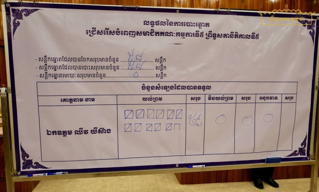 ឯកឧត្តម ឈីវ យីស៊ាង សមាជិកព្រឹទ្ធសភា ត្រូវបានសម័យប្រជុំព្រឹទ្ធសភាជាវិសាមញ្ញ នីតិកាលទី៥ បោះឆ្នោតជ្រើសរើសជាសមាជិកគណៈកម្មការកិច្ចការបរទេស សហប្រតិបត្តិការអន្តរជាតិ និងព័ត៌មាន នៃព្រឹទ្ធសភា (គណៈកម្មការទី៥) ដោយទទួលបានសំឡេងគាំទ្រចំនួន ៥៨សំឡេង នៃចំនួនសមាជិកព្រឹទ្ធសភាទាំងមូល៕