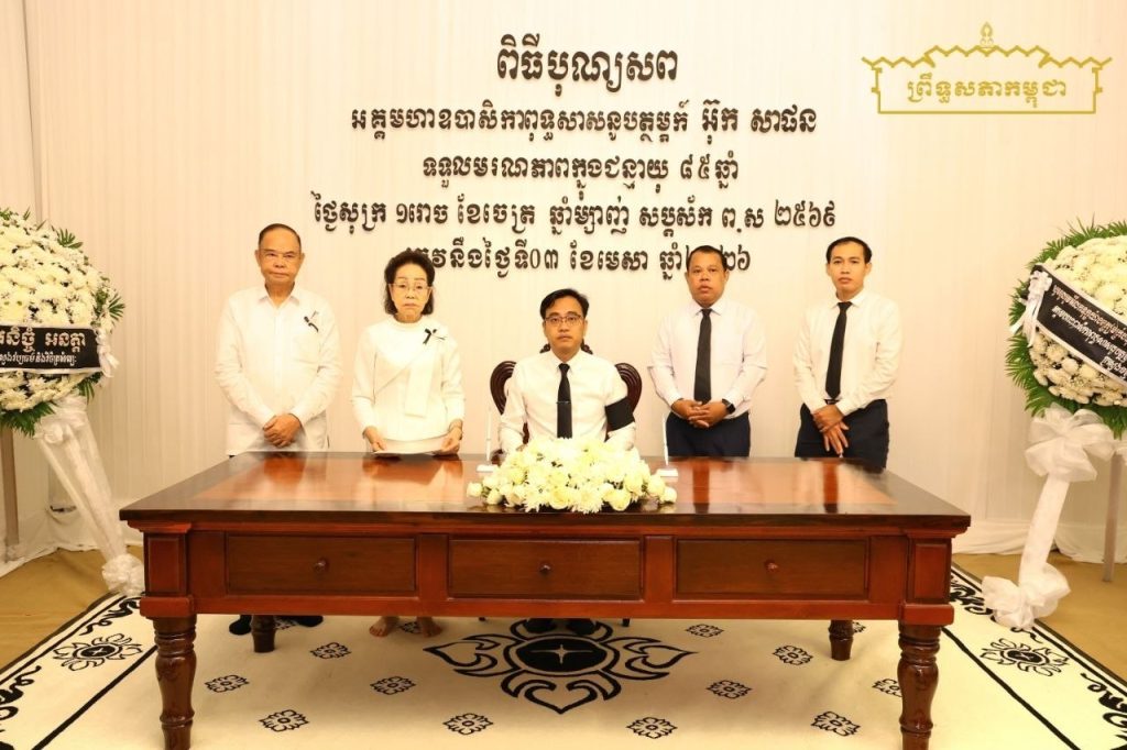 សារលិខិតរំលែកមរណទុក្ខរបស់ឯកឧត្តម ម៉ម ប៊ុននាង ប្រធានគណៈកម្មការទី១០ព្រឹទ្ធសភា គោរពជូន លោកជំទាវបណ្ឌិត អ៊ុក ម៉ាលី និងក្រុមគ្រួសារ ចំពោះមរណភាពរបស់ អគ្គមហាឧបាសិកាពុទ្ធសាសនូបត្ថម្ភក៍ អ៊ុក សាផន ដែលត្រូវជាបងស្រីបង្កើតរបស់លោកជំទាវបណ្ឌិត បានទទួលមរណភាពនៅថ្ងៃទី៣ ខែមេសា ឆ្នាំ២០២៦ ក្នុងជន្មាយុ៨៥ឆ្នាំ ដោយរោគាពាធ។