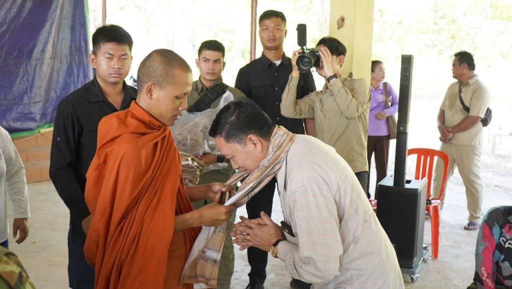 ជាមួយសង្ឈដីកា និងការប្រោសព្រំប្រសិទ្ធពរជ័យរបស់ ព្រះអង្គធម្មវនវាសី ចន្ទ មុនី អំណោយដែលប្រគល់ជូនក្នុងឱកាសនោះ គឺបានមកពីការឧបត្ថម្ភដ៏ថ្លៃថ្លាពី សម្តេចកិត្តិសង្គហបណ្ឌិត ម៉ែន សំអន ឧត្តមប្រឹក្សាផ្ទាល់ព្រះមហាក្សត្រ នៃព្រះរាជាណាចក្រកម្ពុជា និងជាប្រធានសមាគមនារីកម្ពុជាដើម្បីសន្តិភាព និងអភិវឌ្ឍន៍ គណៈកម្មការទី៨ព្រឹទ្ធសភា និងក្រុមសមាជិកាព្រឹទ្ធសភា រួមមាន ឃីតចំនួន ១,៥០០កញ្ចប់ (ចំនួន១១មុខ និងថវិកាម្នាក់ៗចំនួន៥ម៉ឺនរៀល) ព្រមទាំងសម្ភារៈមួយចំនួនទៀតរបស់ព្រះអង្គធម្មវនវាសី ចន្ទ មុនី ផងដែរ។