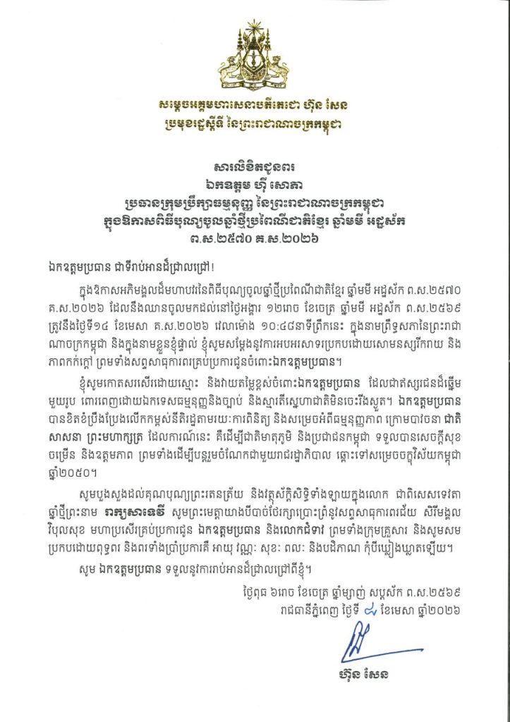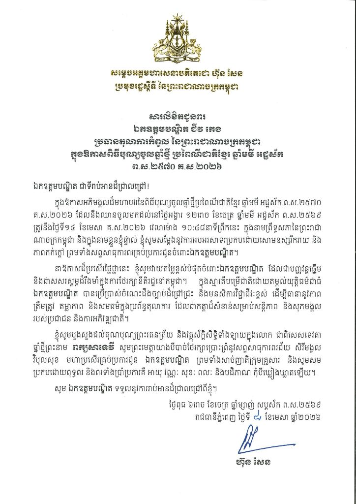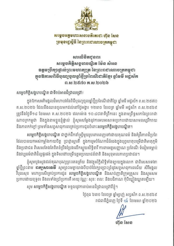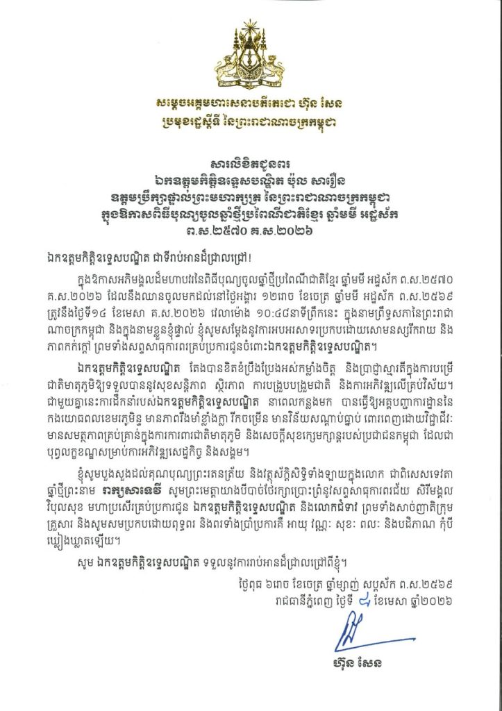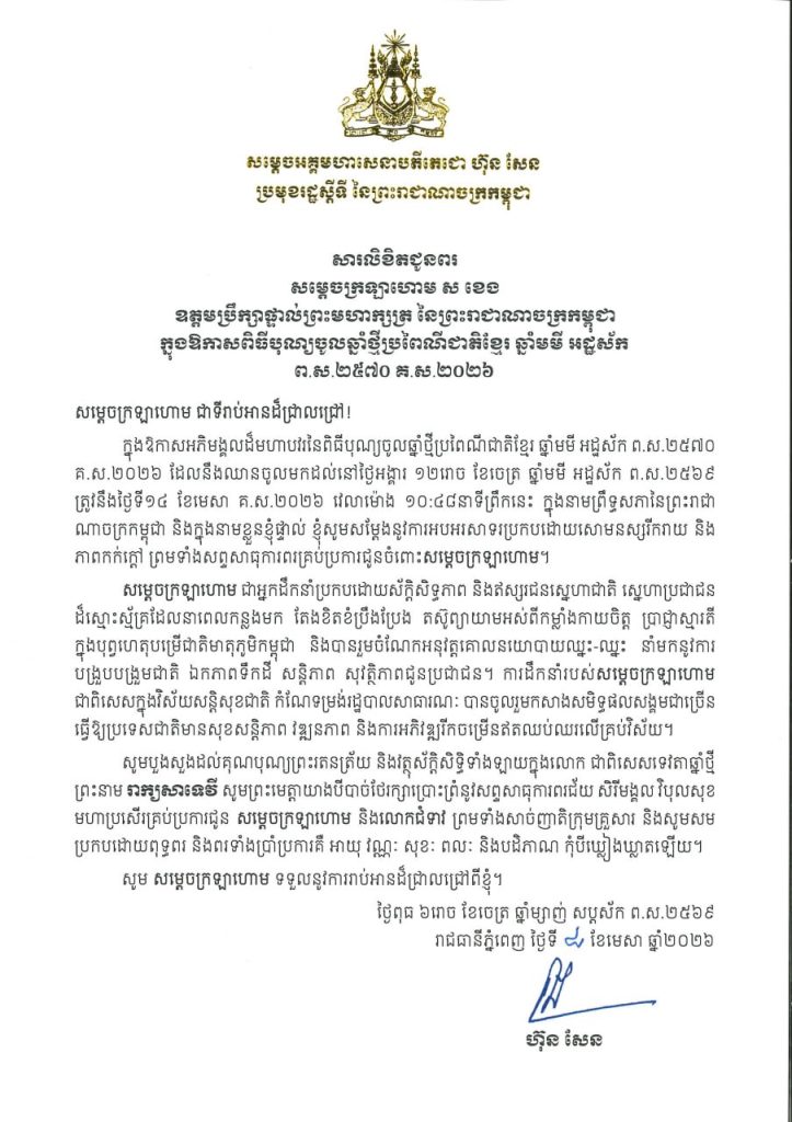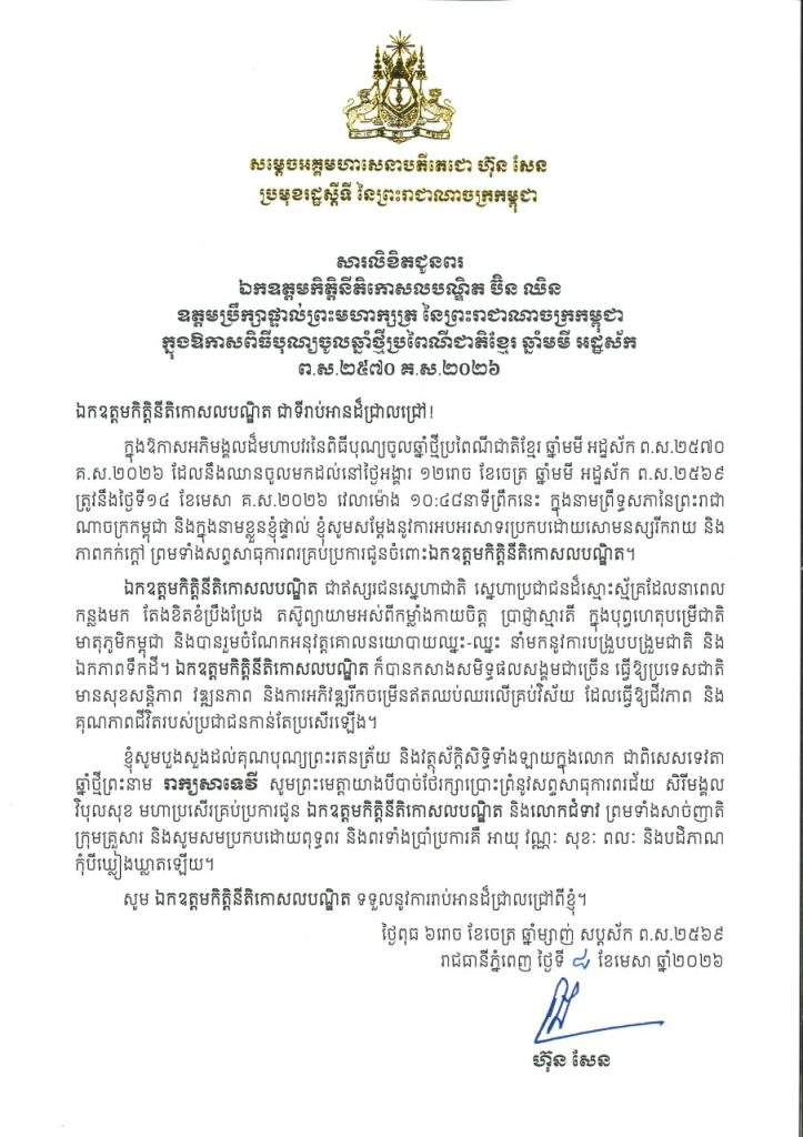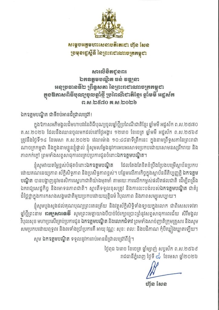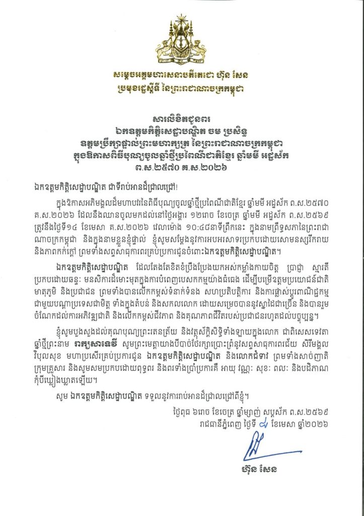 ១-សម្តេចកិត្តិព្រឹទ្ធបណ្ឌិត ប៊ុនរានី ហ៊ុនសែន ប្រធានកាកបាទក្រហមកម្ពុជា២-សម្តេចមហាបវរធិបតី ហ៊ុន ម៉ាណែត នាយករដ្ឋមន្ត្រី នៃព្រះរាជាណាចក្រកម្ពុជា៣-លោកជំទាវបណ្ឌិត ពេជ ចន្ទមុន្នី ហ៊ុនម៉ាណែត អគ្គស្នងការនៃសមាគមកាយឫទ្ធិនារីកម្ពុជា និងជាអនុប្រធានក្រុមប្រឹក្សាភិបាលសមាគមគ្រូពេទ្យស្ម័គ្រចិត្តយុវជនសម្តេចតេជោ៤-សម្តេចមហារដ្ឋសភាធិការធិបតី ឃួន សុដារី ប្រធានរដ្ឋសភា នៃព្រះរាជាណាចក្រកម្ពុជា៥-សម្តេចអគ្គមហាពញាចក្រី ហេង សំរិន ប្រធានកិត្តិយសនៃក្រុមឧត្តមប្រឹក្សាផ្ទាល់ព្រះមហាក្សត្រ នៃព្រះរាជាណាចក្រកម្ពុជា៦-សម្តេចវិបុលសេនាភក្តី សាយ ឈុំ ឧត្តមប្រឹក្សាផ្ទាល់ព្រះមហាក្សត្រ នៃព្រះរាជាណាចក្រកម្ពុជា៧-សម្តេចមហាមន្ត្រី គុយ សុផល ឧបនាយករដ្ឋមន្ត្រី រដ្ឋមន្ត្រីក្រសួងព្រះបរមរាជវាំង៨-សម្តេចក្រឡាហោម ស ខេង ឧត្តមប្រឹក្សាផ្ទាល់ព្រះមហាក្សត្រ នៃព្រះរាជាណាចក្រកម្ពុជា៩-សម្តេចពិជ័យសេនា ទៀ បាញ់ ឧត្តមប្រឹក្សាផ្ទាល់ព្រះមហាក្សត្រ នៃព្រះរាជាណាចក្រកម្ពុជា១០-សម្តេចកិត្តិសង្គហបណ្ឌិត ម៉ែន សំអន ឧត្តមប្រឹក្សាផ្ទាល់ព្រះមហាក្សត្រ នៃព្រះរាជាណាចក្រកម្ពុជា១១-សម្តេចឥស្សរវិទេសបញ្ញា ហោ ណាំហុង ឧត្តមប្រឹក្សាផ្ទាល់ព្រះមហាក្សត្រ នៃព្រះរាជាណាចក្រកម្ពុជា១២-សម្តេចសេដ្ឋវិទូតក្តី គាត ឈន់ ប្រធានកិត្តិយសឧត្តមក្រុមប្រឹក្សាសេដ្ឋកិច្ចជាតិ១៣-សម្តេចរាជបុត្រីព្រះអនុជ នរោត្តម អរុណរស្មី ឧត្តមប្រឹក្សាផ្ទាល់ព្រះមហាក្សត្រ និងជាសមាជិកាព្រឹទ្ធសភា១៤-សម្តេចក្រុមព្រះ នរោត្តម ច័ក្រពង្ស់ ឧត្តមប្រឹក្សាផ្ទាល់ព្រះមហាក្សត្រ នៃព្រះរាជាណាចក្រកម្ពុជា១៥-ឯកឧត្តមកិត្តិនីតិកោសលបណ្ឌិត ស៊ឹម កា ឧត្តមប្រឹក្សាផ្ទាល់ព្រះមហាក្សត្រ នៃព្រះរាជាណាចក្រកម្ពុជា១៦-ឯកឧត្តមកិត្តិនីតិកោសលបណ្ឌិត ប៊ិន ឈិន ឧត្តមប្រឹក្សាផ្ទាល់ព្រះមហាក្សត្រ នៃព្រះរាជាណាចក្រកម្ពុជា១៧-ឯកឧត្តមកិត្តិសង្គហបណ្ឌិត ទេព ងន ឧត្តមប្រឹក្សាផ្ទាល់ព្រះមហាក្សត្រ នៃព្រះរាជាណាចក្រកម្ពុជា១៨-ឯកឧត្តមកិត្តិនីតិកោសលបណ្ឌិត អ៊ឹម ឈុនលឹម ឧត្តមប្រឹក្សាផ្ទាល់ព្រះមហាក្សត្រ នៃព្រះរាជាណាចក្រកម្ពុជា១៩-ឯកឧត្តមកិត្តិសេដ្ឋាបណ្ឌិត ចម ប្រសិទ្ធ ឧត្តមប្រឹក្សាផ្ទាល់ព្រះមហាក្សត្រ នៃព្រះរាជាណាចក្រកម្ពុជា២០-ឯកឧត្តមកិត្តិនីតិកោសលបណ្ឌិត ឌិត មុន្ទី ឧត្តមប្រឹក្សាផ្ទាល់ព្រះមហាក្សត្រ នៃព្រះរាជាណាចក្រកម្ពុជា២១-ឯកឧត្តមកិត្តិឧទ្ទេសបណ្ឌិត ប៉ុល សារឿន ឧត្តមប្រឹក្សាផ្ទាល់ព្រះមហាក្សត្រ នៃព្រះរាជាណាចក្រកម្ពុជា២២-ឯកឧត្តម កែ គឹមយ៉ាន ឧត្តមប្រឹក្សាផ្ទាល់ព្រះមហាក្សត្រ នៃព្រះរាជាណាចក្រកម្ពុជា២៣-ឯកឧត្តម ជា សុផារ៉ា ឧត្តមប្រឹក្សាផ្ទាល់ព្រះមហាក្សត្រ នៃព្រះរា