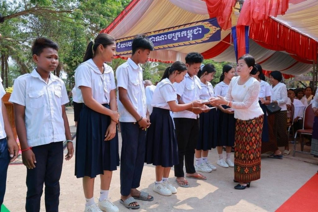 -ឧបត្ថម្ភជូនសិស្សានុសិស្ស ចំនួន១៧៥នាក់ ម្នាក់ៗទទួលបានសៀវភៅ១ក្បាល ប៊ិច១ដើម ថវិកាមួយចំនួន