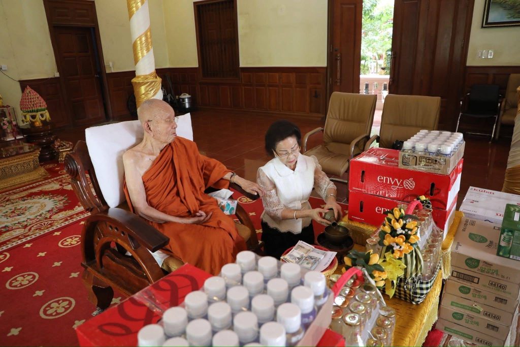 ក្នុងឱកាសនោះ លោកជំទាវបណ្ឌិត បានពាំនាំនូវប្រសាសន៍ផ្តាំផ្ញើថ្វាយព្រះពរពីសំណាក់ សម្តេចកិត្តិព្រឹទ្ធបណ្ឌិត ប៊ុន រ៉ានី ហ៊ុនសែន និងសម្តេចអគ្គមហាសេនាបតីតេជោ ហ៊ុន សែន ថ្វាយប្រគេនចំពោះសម្តេចព្រះអគ្គមហាសង្ឃរាជាធិបតី កិត្តិឧទ្ទេសបណ្ឌិត នន្ទ ង៉ែត សម្តេចព្រះមហាសង្ឃរាជ នៃព្រះរាជាណាចក្រកម្ពុជា សូមព្រះអង្គមានព្រះរាជសុខភាពល្អបរិបូរណ៍ ព្រះកាយពលមាំមួន ព្រះជន្មាទីឃាយុយឺនយូរ ដើម្បីបន្តគង់ប្រថាប់ជាម្លប់ទ្រទ្រង់វិស័យព្រះពុទ្ធសាសនាអស់កាលជាអង្វែងតរៀងទៅ។