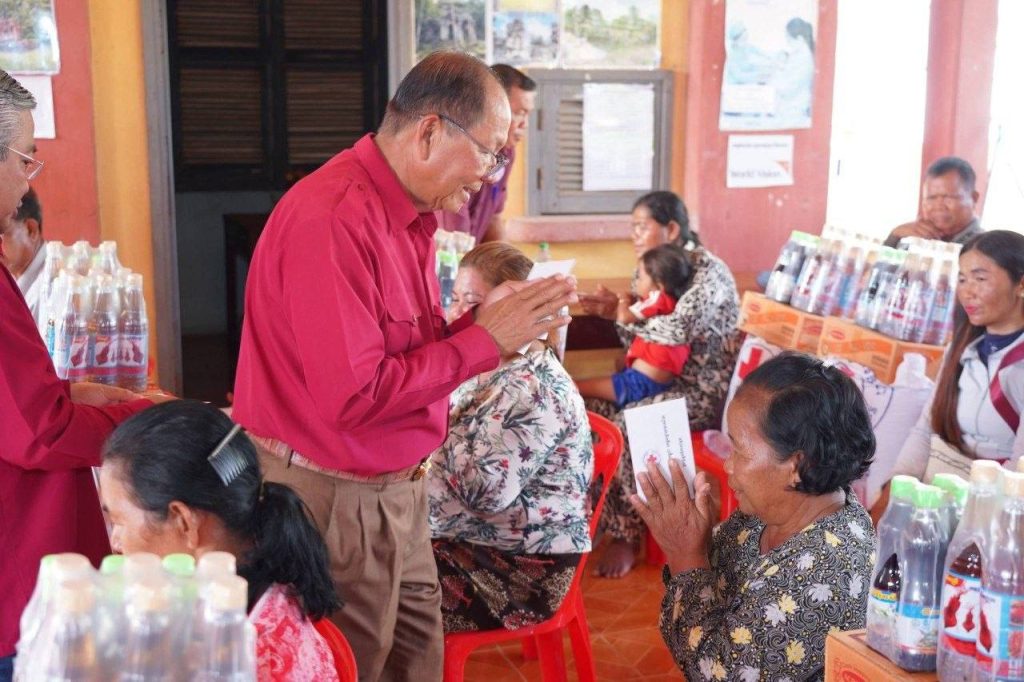 នារសៀលថ្ងៃអង្គារ ទី២១ ខែមេសា ឆ្នាំ២០២៦ ស្ថិតនៅសាលាឃុំសារង្គ ស្រុកស្វាយចេក ខេត្តបន្ទាយមានជ័យ ឯកឧត្ដម ឈើយ ចាន់ណា លេខាធិការគណៈកម្មការទី៧ព្រឹទ្ធសភា និងជាលេខាធិការក្រុមសមាជិកព្រឹទ្ធសភាប្រចាំភូមិភាគទី៤ ជាអនុប្រធានកិត្តិយសសាខាកាកបាទក្រហមកម្ពុជាខេត្ត រួមជាមួយលោក បឹង គឹមសឹង ប្រធានមន្ទីរសេដ្ឋកិច្ច និងហិរញ្ញវត្ថុខេត្តបន្ទាយមានជ័យ និងជាអនុប្រធានសាខាកាកបាទក្រហមកម្ពុជាខេត្ត បានអញ្ជើញចុះសួរសុខទុក្ខ និងចែកជូនអំណោយសាខាកាកបាទក្រហមកម្ពុជាខេត្ត ដល់បងប្អូនប្រជាពលរដ្ឋចំនួន១៥គ្រួសារ ក្នុងឃុំសារង្គ ដែលរងគ្រោះដោយខ្យល់ព្យុះកន្រ្តាក់ ធ្វើឱ្យខូចខាតផ្ទះសម្បែង កាលពីរសៀលថ្ងៃទី១៩ ខែមេសា ឆ្នាំ២០២៦។ ពិធីនេះមានការចូលរួមពី លោក លោកស្រី សមាជិកក្រុមប្រឹក្សាស្រុក អភិបាលរងស្រុក មន្រ្តីប្រតិបត្តិសាខាកាកបាទក្រហមខេត្ត លោក មេឃុំ ក្រុមប្រឹក្សាឃុំ លោកមេភូមិយ៉ាងច្រើនកុះករផងដែរ។