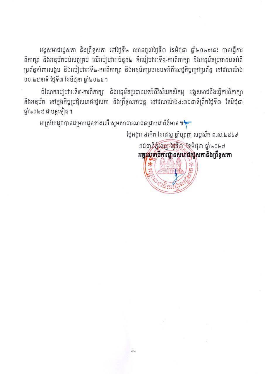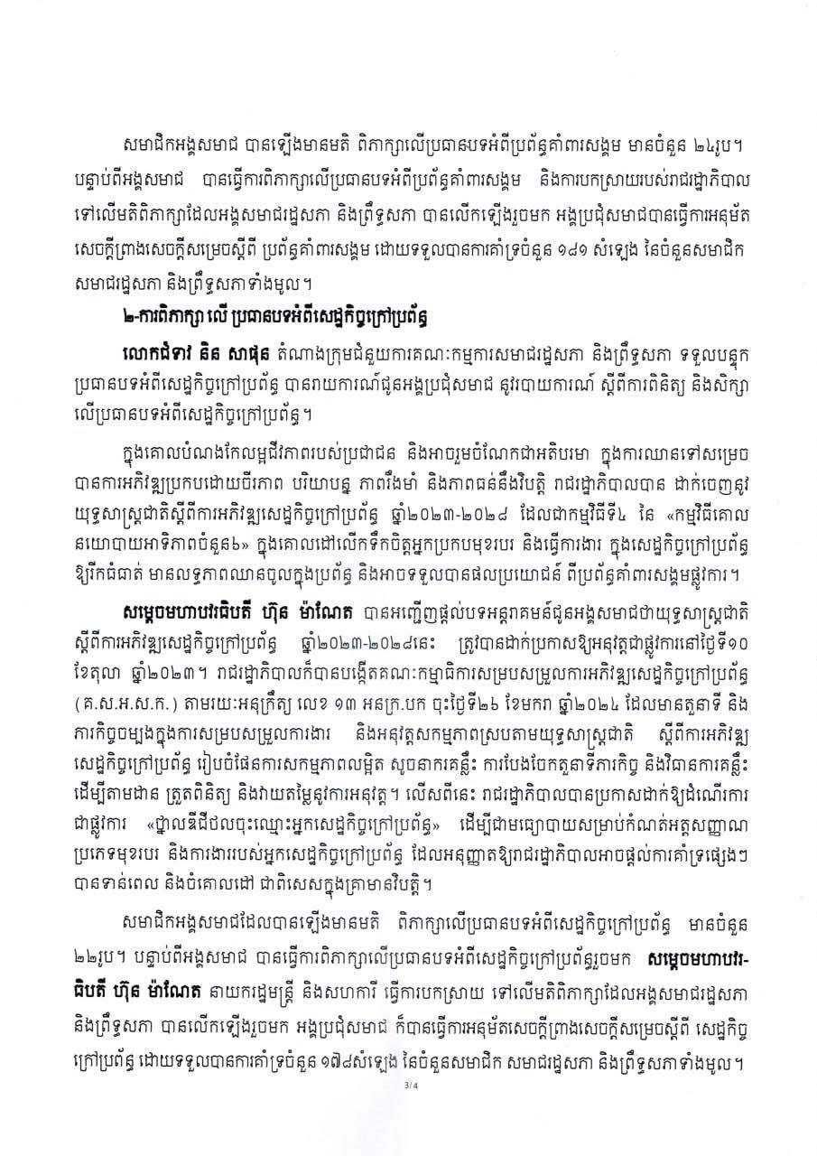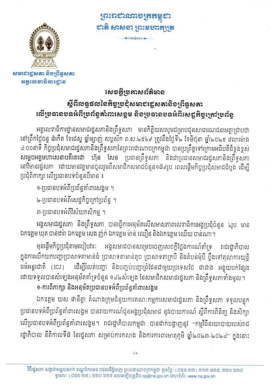 សេចក្តីប្រកាសព័ត៌មាន ស្តីពីលទ្ធផលនៃកិច្ចប្រជុំ សមាជរដ្ឋសភានិងព្រឹទ្ធសភា លើប្រធានបទអំពី ប្រព័ន្ធគាំពារសង្គម និងប្រធានបទ អំពីសេដ្ឋកិច្ចក្រៅប្រព័ន្ធ