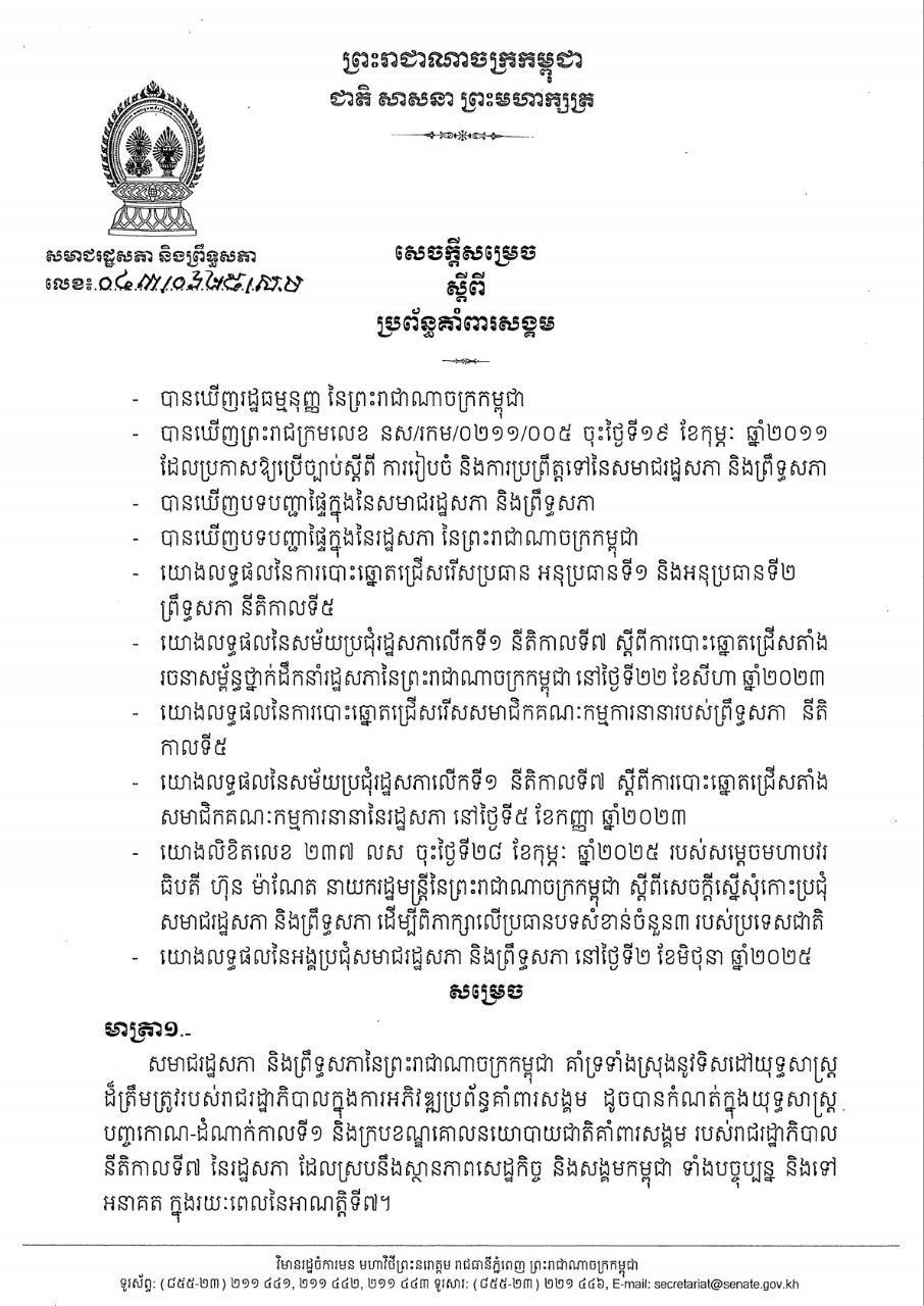 សារលិខិតជូនពររបស់ឯកឧត្តម​ ឡាយ សំកុល​ អគ្គលេខាធិការ​ព្រឹទ្ធសភា​ គោរពជូន សម្តេចកិត្តិព្រឹទ្ធបណ្ឌិត ប៊ុន រ៉ានី ហ៊ុន សែន ប្រធានកាកបាទក្រហមកម្ពុជា ក្នុងឱកាសដ៏ឧត្តុង្គឧត្តមប្រកបដោយក្តីសោមនស្សរីករាយ នៃពិធីចម្រើនជន្មាយុរបស់ សម្តេចកិត្តិព្រឹទ្ធបណ្ឌិត ដែលនឹងប្រព្រឹត្តទៅនៅថ្ងៃទី១៥ ខែធ្នូ ឆ្នាំ២០២៥ ខាងមុខនេះ