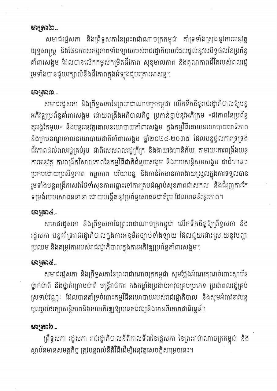 • សេចក្តីសម្រេច របស់ សមាជរដ្ឋសភា និងព្រឹទ្ធសភា ស្តីពី ប្រព័ន្ធគាំពារសង្គម