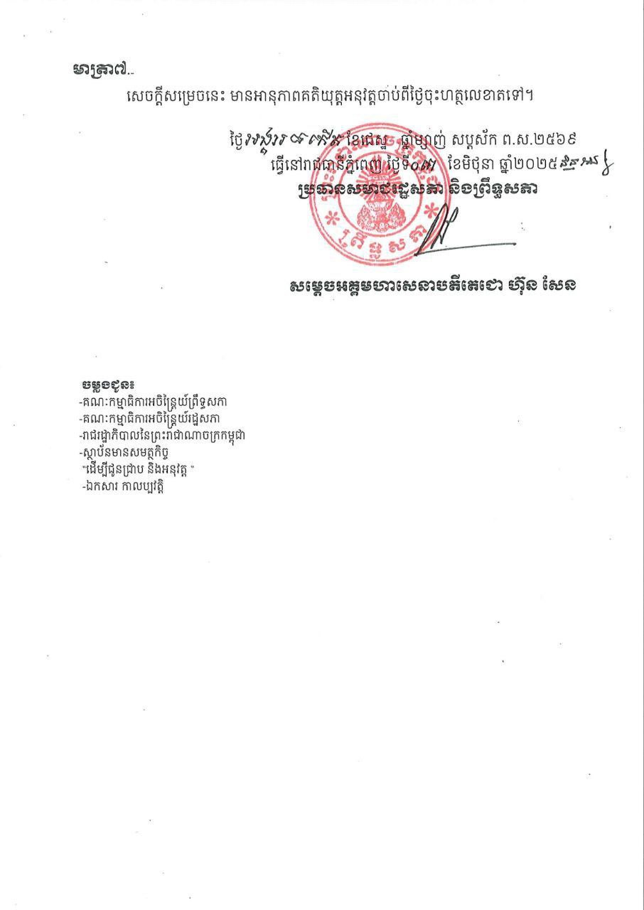 សារលិខិតជូនពររបស់ឯកឧត្តម ឡាយ សំកុល អគ្គលេខាធិការព្រឹទ្ធសភា គោរពជូន សម្តេចកិត្តិព្រឹទ្ធបណ្ឌិត ប៊ុន រ៉ានី ហ៊ុន សែន ប្រធានកាកបាទក្រហមកម្ពុជា ក្នុងឱកាសដ៏ឧត្តុង្គឧត្តមប្រកបដោយក្តីសោមនស្សរីករាយ នៃពិធីចម្រើនជន្មាយុរបស់ សម្តេចកិត្តិព្រឹទ្ធបណ្ឌិត ដែលនឹងប្រព្រឹត្តទៅនៅថ្ងៃទី១៥ ខែធ្នូ ឆ្នាំ២០២៥ ខាងមុខនេះ