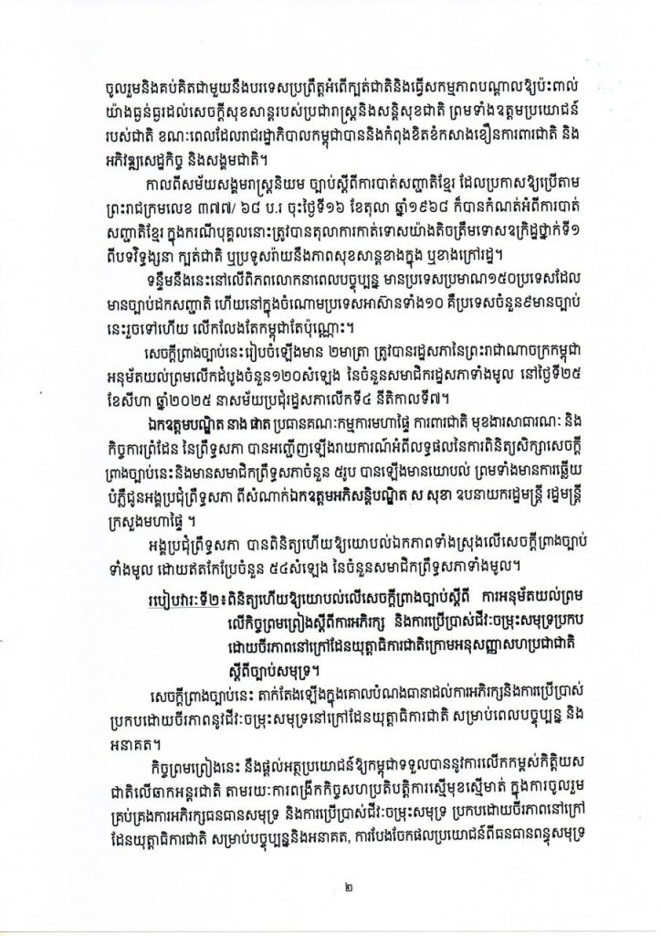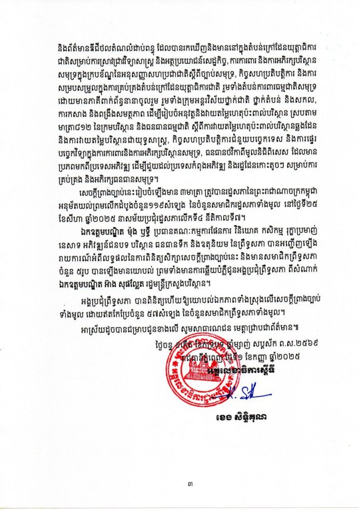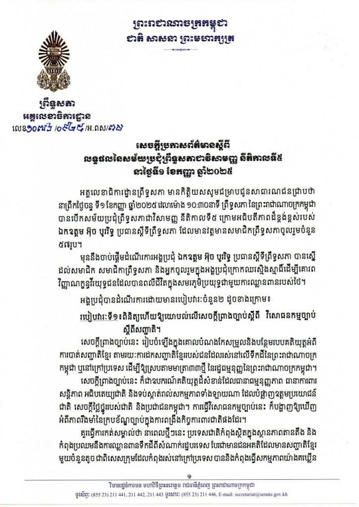 • សេចក្តីប្រកាសព័ត៌មានស្តីពី​ លទ្ធផលនៃសមយ័ប្រជុំព្រឹទ្ធសភាជាវិសាមញ្ញ នីតិកាលទី៥ នាថ្ងៃទី១ ខែកញ្ញា ឆ្នាំ២០២៥